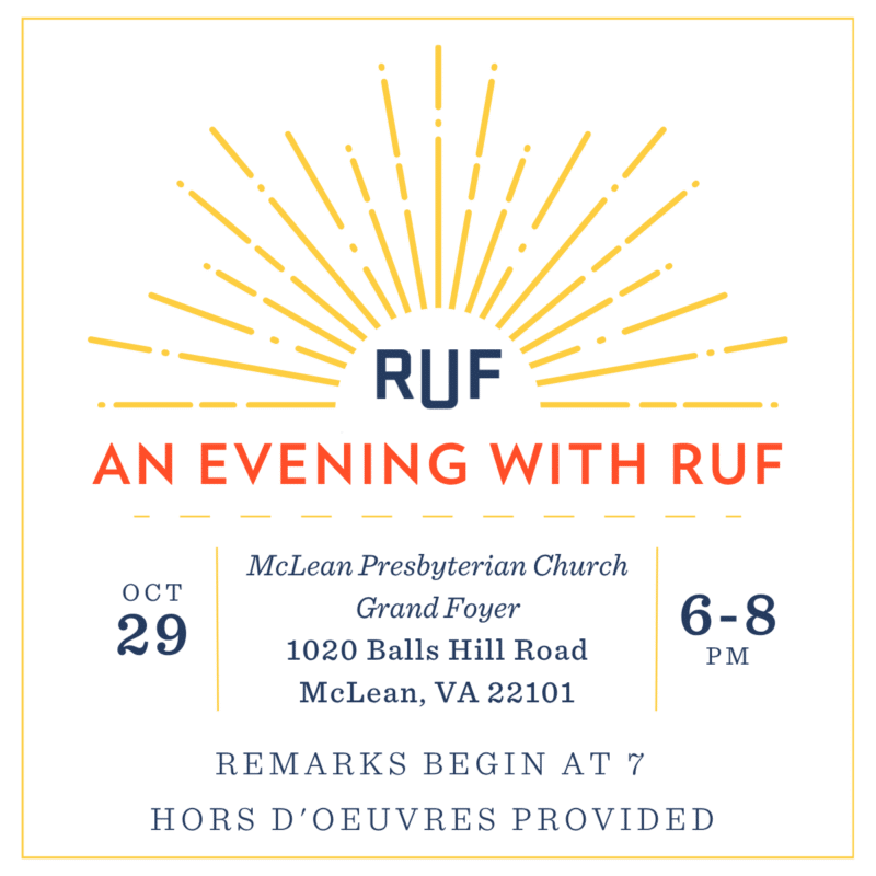 All are invited and welcome to join Reformed University Fellowship for a night of vision and celebration as we welcome RUF’s new Coordinator, Andrew Rein, and his wife Holly, both of whom are former members of MPC!